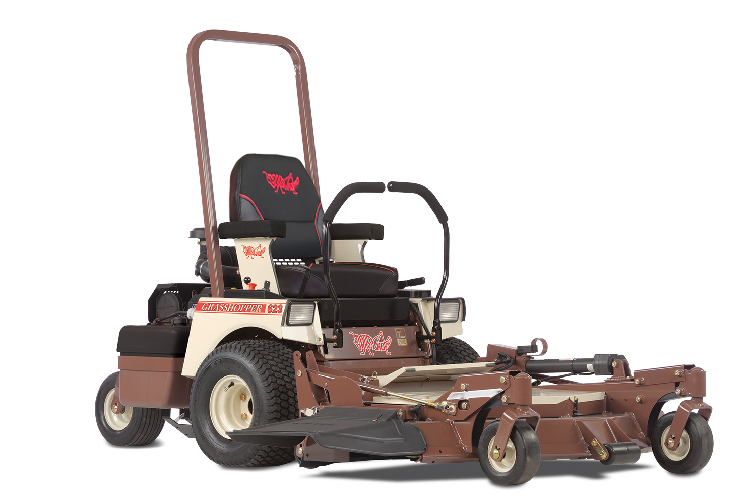 An ideal FrontMount™ solution for home or business use, the Grasshopper Model 623T riding lawn mower with zero-turn maneuverability offers the power, reliability and economical performance that homeowners and lawn care professionals need to get the job done. Make quick work of cleaning the underside of the cutting deck with the exclusive PowerFold® deck lift/electric height adjustment feature. The front-mounted deck removes and can be replaced with turf renovation and snow removal implements for year-round productivity.