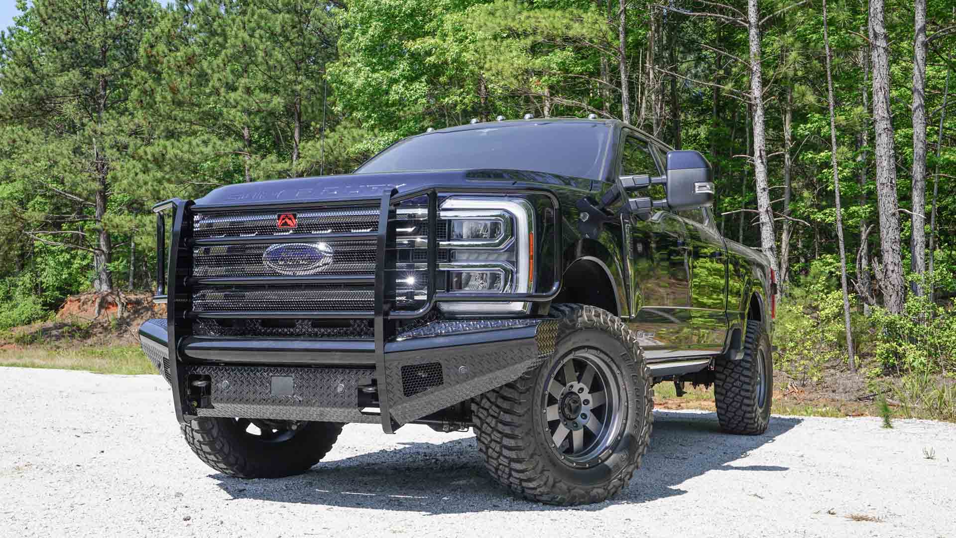 Attention ranchers and hardworking individuals seeking the perfect companion for their rugged lifestyle. Fab Fours’ Black Steel ranch bumper—the ultimate solution for durability, functionality, and style for your Ford Super Duty. Engineered to withstand the toughest off-road conditions, the Black Steel front bumper guarantees maximum durability without sacrificing style. Customization options abound, including a winch tray, d-ring mounts, 2-inch receiver, and lower guards, allowing you to make it uniquely yours. When it comes to quality and craftsmanship, choose the made in the USA option—the Fab Fours Black Steel front bumper is the ultimate choice for truck owners seeking both style and reliability.